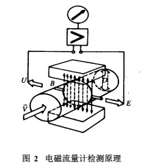 具有導電性的被測介質液態(tài)以一定的速度流動時,則在與流動方向垂直的方向上產生與流量成比例的感應電勢 E,其值為