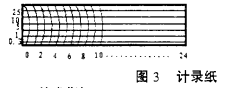 記錄紙其長度和寬度根據(jù)記錄設(shè)備要求,其橫坐標(biāo)可以設(shè)計成以小時為單位,也可以設(shè)計成以天為單位,可以根據(jù)用戶要求設(shè)計成不同型式,其縱坐標(biāo)也是根據(jù)流量公式Q=CHN計算得到,量程可自己選擇,其樣式可參見圖3。