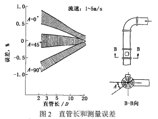 2000年上海原水公司擬在已建成的某泵站加裝DN2200智能硫酸流量計(jì),但彎管下游安裝位置的前直管長度明顯不符合規(guī)定中5D~10D(D為管徑,下同)的要求,此時(shí),影響測量誤差有多大呢?