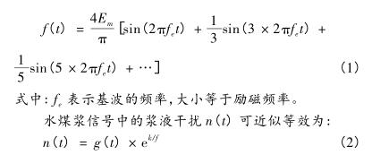 采用方波勵(lì)磁的水泥泥漿流量計(jì),其傳感器輸出的與流量相關(guān)的感應(yīng)電動(dòng)勢(shì)信號(hào)的波形也類似于方波。針對(duì)與流量相關(guān)的感應(yīng)電動(dòng)勢(shì)信號(hào)f(t)的特點(diǎn),可知其是由基波和奇次諧波疊加而成的。對(duì)于一個(gè)給定單峰值為Em的矩形波信號(hào),其傅里葉展開為: