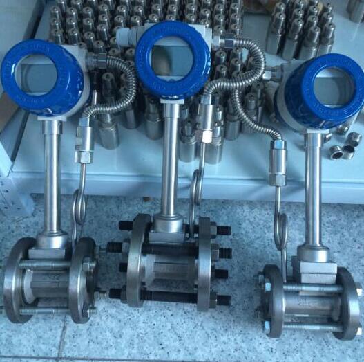 2、溫度補償一體型渦街流量計還帶有溫度傳感器,可以直接測量出飽和蒸汽的溫度并計算出壓力,從而顯示飽和蒸汽的質量流量。