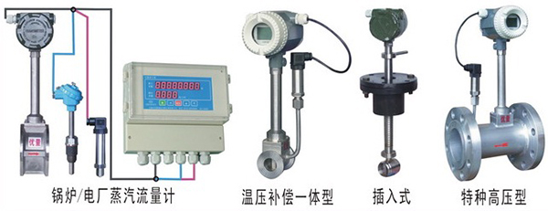 2、溫度補(bǔ)償一體型渦街流量計(jì)還帶有溫度傳感器,可以直接測(cè)量出飽和蒸汽的溫度并計(jì)算出壓力,從而顯示飽和蒸汽的質(zhì)量流量。