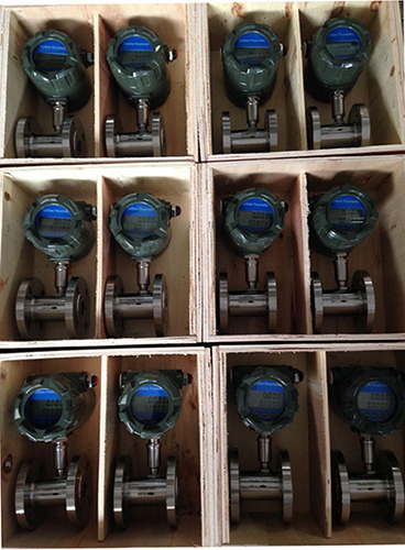 渦輪流量計適用于在工作溫度下粘度小于5×10-6m2/s的介質(zhì),對于粘度大于5×10-6m2/s的液體,要對傳感器進行實液標定后使用。