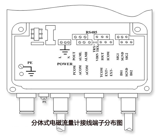 一體型鹽酸流量計(jì)接線端子分布圖