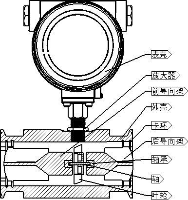 在管道中心安放一個(gè)渦輪,兩端由軸承支撐。當(dāng)流體通過管道時(shí),沖擊渦輪流量計(jì)葉片,對(duì)渦輪流量計(jì)產(chǎn)生驅(qū)動(dòng)力矩,使渦輪流量計(jì)克服摩擦力矩和流體阻力矩而產(chǎn)生旋轉(zhuǎn)。在一定的流量范圍內(nèi),對(duì)一定的流體介質(zhì)粘度,渦輪流量計(jì)的旋轉(zhuǎn)角速度與流體流速成正比。由此,流體流速可通過渦輪流量計(jì)的旋轉(zhuǎn)角速度得到,從而可以計(jì)算得到通過管道的流體流量。