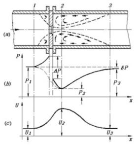 流體流經(jīng)節(jié)流件時(shí)壓力和流速變化情況