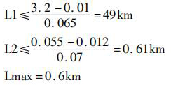 式中: L1---按允許電感計(jì)算的電纜*大允許長(zhǎng)度,單位 km;