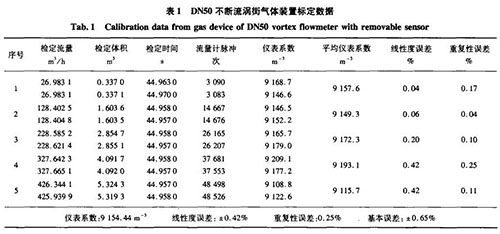 在實(shí)際標(biāo)定過程中,相同口徑的不斷流渦街與普通氣體渦街流量計(jì)在可測流量范圍、基本誤差、重復(fù)性等參數(shù)上基本一致,達(dá)到了設(shè)計(jì)和使用精度的要求。