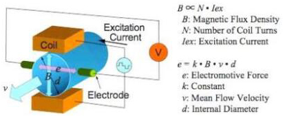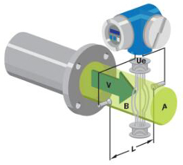 基本上,當(dāng)導(dǎo)電液體流過磁場時(shí),會感應(yīng)出電壓。為了測量該產(chǎn)生的電壓(與流動(dòng)的液體的速度成正比),使用了兩個(gè)彼此相對安裝的不銹鋼電極。