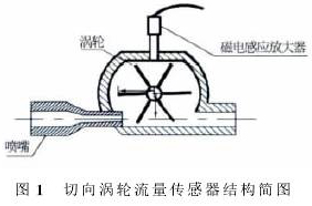 高溫導熱油流量計基本構造見圖1。被測流體在流經(jīng)葉輪之前流道會減縮,流速增加,流體經(jīng)過葉輪后葉片旋轉,磁電傳感器記錄葉片轉動頻率,得到被測流體相對應的流量。