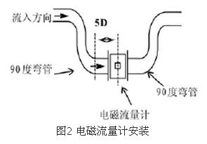 (2)直管段保證在前5D后3D為獲得儀表測量精確度,在傳感器上游側(cè)的直管段長度不小于5D,下游側(cè)不小于3D(D為傳感器的名義直徑)。若在傳感器上游側(cè)有兩個以上的彎頭或其它阻流件,則前置直管段應(yīng)大于10D。