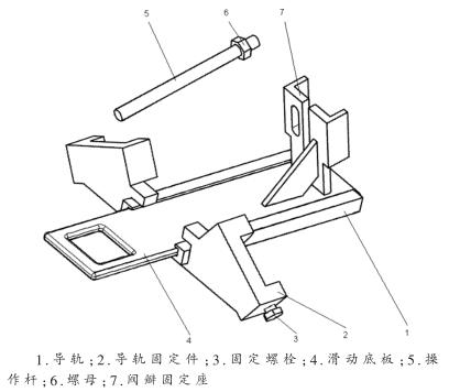 (1)閥瓣拆裝及接觸試驗(yàn)?zāi)K的特點(diǎn)閥瓣拆裝及接觸試驗(yàn)?zāi)K主要由導(dǎo)軌、導(dǎo)軌固定件、滑動(dòng)底板、操作桿、固定螺栓、閥瓣固定座等零部件組成。