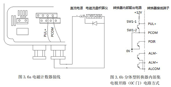頻率(脈沖)、上下限報警、流向標示等輸出均為集電極開路的電平輸出信號。