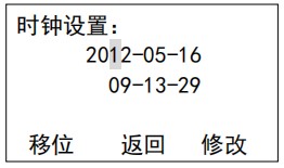 設(shè)置界面 17:時(shí)鐘設(shè)置,校準(zhǔn)當(dāng)前運(yùn)行的日期和時(shí)間,此參數(shù)出廠時(shí)已校準(zhǔn),時(shí)鐘設(shè)置影響數(shù)據(jù)計(jì)算,在運(yùn)行前務(wù)必設(shè)置成當(dāng)前日期,如錯(cuò)誤將造成記錄保存混亂。
