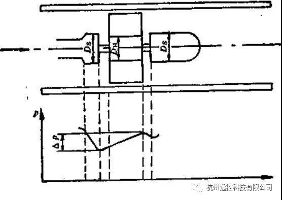 由于流體通過渦輪時會對渦輪產(chǎn)生一個軸向推力,使鈾承的摩擦轉(zhuǎn)矩增大,加速鈾承磨損,為了消除軸向力,需在結(jié)構(gòu)上采取水力平衡措施,這方法的原理見下圖所示。由于渦輪處直徑DH略小于前后支架處直徑Ds,所以,在渦輪段流通截而擴大,流速降低,使流體靜壓上升P,這個P的靜壓將起到抵消部分軸向推力的作用。
