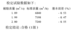 現(xiàn)以其中1臺開封儀表廠生產(chǎn)的口徑1600mm的0.5級電磁流量計(jì)為例,分析超聲波流量計(jì)的檢定方法及其優(yōu)缺點(diǎn)。