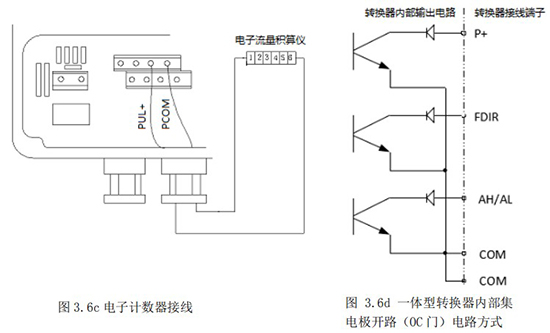 1.1.5 頻率(脈沖)、上下限報警、流向標示等輸出均為集電極開路的電平輸出信號。