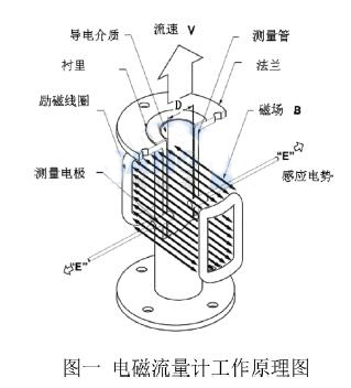 電磁流量計(jì)的測(cè)量原理是基于法拉*電磁感應(yīng)定律:即導(dǎo)體介質(zhì)在磁場(chǎng)介質(zhì)中切割磁力線運(yùn)動(dòng)時(shí)在其兩端產(chǎn)生感應(yīng)電動(dòng)勢(shì)。如圖1所示,導(dǎo)電介質(zhì)在垂直于磁場(chǎng)的非磁性測(cè)量管內(nèi)流動(dòng),與流動(dòng)方向垂直的方向上產(chǎn)生與流量成比例的感應(yīng)電勢(shì),電動(dòng)勢(shì)的方向按“弗來(lái)明右手規(guī)則”,其感應(yīng)電勢(shì)E為:E=KBVD式中:E---感應(yīng)電動(dòng)勢(shì)(與流速成正比);K---比例常數(shù);B---磁場(chǎng)強(qiáng)度(線圈電感);V---測(cè)量管內(nèi)介質(zhì)的平均流速;D---電極間距(測(cè)量管的內(nèi)徑)